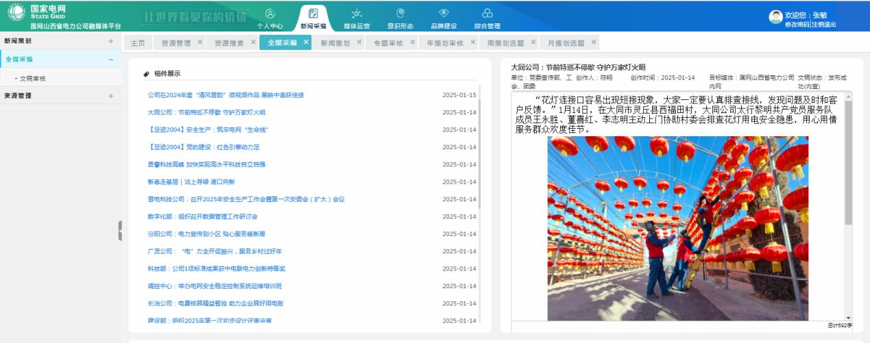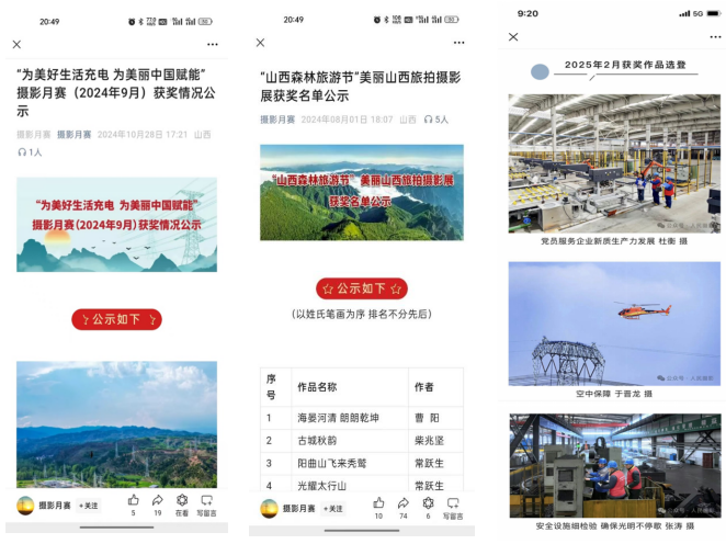 “電約拍”2.0項(xiàng)目實(shí)施以來(lái),重點(diǎn)培養(yǎng)團(tuán)隊(duì)成員17名,輻射帶動(dòng)80余名基層通訊員實(shí)戰(zhàn)能力提升,9名同志被山西攝影家協(xié)會(huì)吸收為會(huì)員。2024年,在人民日?qǐng)?bào)、新華社、山西電視臺(tái)、山西日?qǐng)?bào)、國(guó)家電網(wǎng)各類媒體平臺(tái)發(fā)表圖片594幅、視頻報(bào)道335條,分別同比增長(zhǎng)430%、177%,宣傳績(jī)效得到有效提升,為企業(yè)高質(zhì)量發(fā)展?fàn)I造了良好的內(nèi)外部輿論環(huán)境?!半娂s拍”團(tuán)隊(duì)創(chuàng)作的《稻田喜事》《表里山河處處皆新色》等視頻作品獲得全國(guó)品牌故事大賽一等獎(jiǎng);短視頻“凌空一擊”全網(wǎng)點(diǎn)擊量超2億,評(píng)論、轉(zhuǎn)發(fā)次數(shù)過(guò)萬(wàn)。人民攝影報(bào)先后以三個(gè)整版對(duì)“光影筑夢(mèng) 點(diǎn)亮河?xùn)|”“與光同行 一路奮晉”“光影中的晉電力量”主題進(jìn)行圖文報(bào)道。