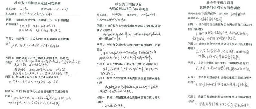 按照差異化需求進(jìn)行分解調(diào)研,對(duì)內(nèi)以調(diào)研問(wèn)卷形式對(duì)14名工作負(fù)責(zé)人、40名班組成員進(jìn)行調(diào)研,尋找關(guān)鍵癥結(jié)。對(duì)外現(xiàn)場(chǎng)走訪利益相關(guān)方20余次,發(fā)出問(wèn)卷80份,收回有效問(wèn)卷76份,調(diào)研結(jié)果統(tǒng)計(jì)得到施工管控難度大、防外破工作威懾力不足、電力專業(yè)理論支持不夠等問(wèn)題。(調(diào)研佐證記錄、調(diào)研總結(jié)分析報(bào)告詳見(jiàn)附件)。