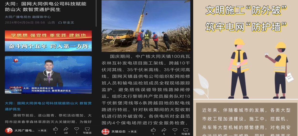 圍繞線下施工高風(fēng)險(xiǎn)、破壞電力設(shè)施責(zé)任追究等方面塑造“五力”防外破責(zé)任品牌,與大同市鑫源企業(yè)文化策劃有限責(zé)任公司簽訂合作意向書(shū),制作漫畫(huà)宣傳物料,宣傳報(bào)道在新華社、《亮報(bào)》等主流媒體刊發(fā)。