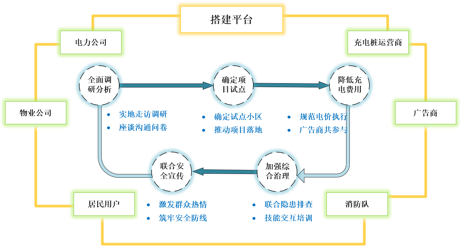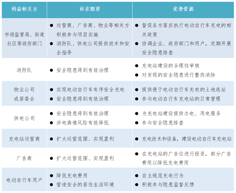 聚焦充電樁建設(shè)、運營運維、費用透明等重點難點,識別并引入街道社區(qū)、物業(yè)、消防隊、充電站運營商、廣告商等利益相關(guān)方,充分考慮各方訴求、期望,推動各方自愿融入、合作共贏,發(fā)揮各方管理優(yōu)勢、服務(wù)優(yōu)勢、技術(shù)優(yōu)勢。