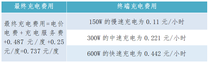 表3:充電費用詳解
