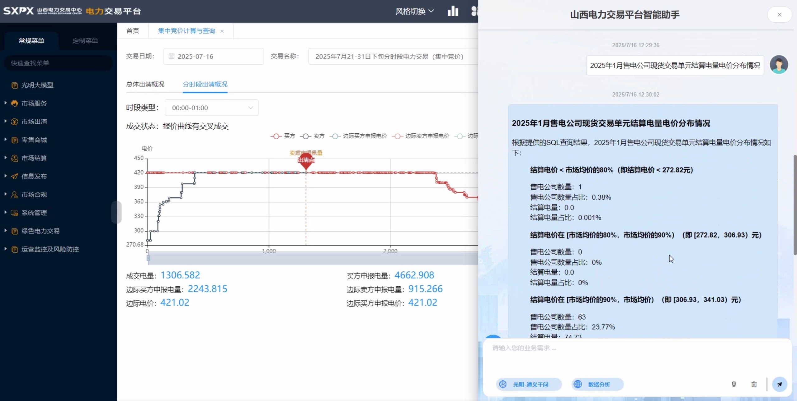 本次獲獎(jiǎng)項(xiàng)目由國(guó)網(wǎng)山西電力數(shù)字化部、山西電力交易中心牽頭,國(guó)網(wǎng)山西信通公司提供技術(shù)支撐,聚焦電力交易業(yè)務(wù)痛點(diǎn),積極響應(yīng)新型電力系統(tǒng)與全國(guó)統(tǒng)一電力市場(chǎng)建設(shè)戰(zhàn)略。項(xiàng)目依托人工智能技術(shù)破解電力市場(chǎng)數(shù)據(jù)處理難題,構(gòu)建起智能問(wèn)答、智能導(dǎo)航、智能分析、智能防護(hù)四大核心場(chǎng)景,實(shí)現(xiàn)電力交易全流程智能化升級(jí)。項(xiàng)目從全國(guó)400余個(gè)參賽場(chǎng)景中突圍奪得大賽一等獎(jiǎng)。