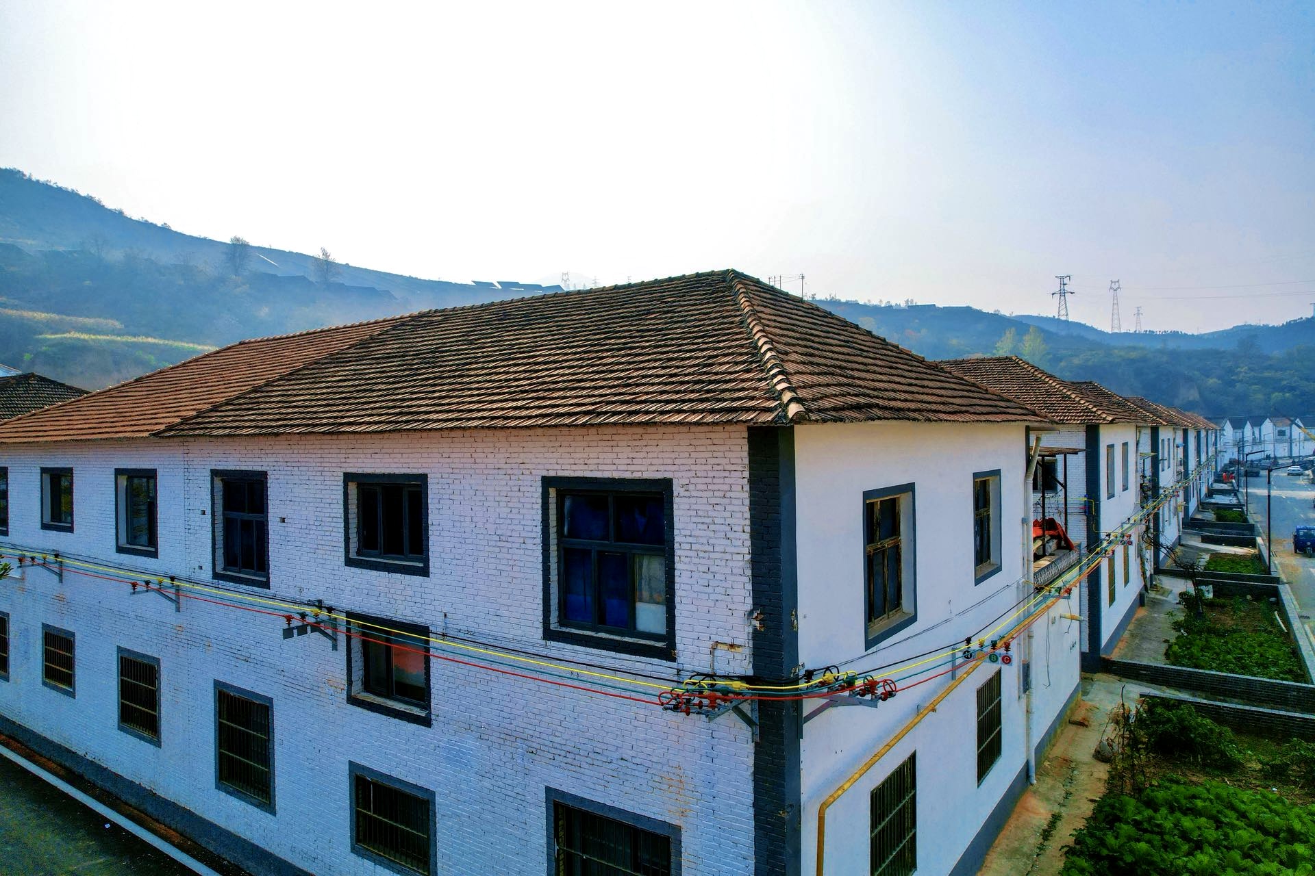 改造后的蘇莊村,墻面整齊排布著四種顏色的線纜。王佳寧 攝